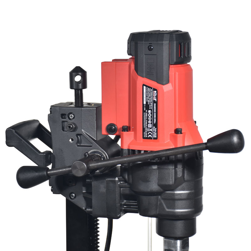 Καροτιέρα σε κατακόρυφη Βάση με Ισχυρό Μοτέρ 3000 Watt για Μέγιστη Διάτριση σε Μπετόν Φ159 και Τοιχοποιία Φ200 mm με Αντιηλεκτροπληξιακό Διακόπτη Ατομικής Προστασίας RCD και Βρυσάκι Εισόδου Νερού με Μειωτή Πίεσης 1 Bar.