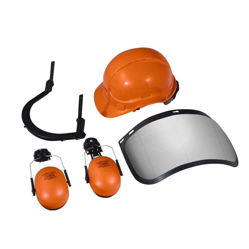 Σετ Ανθεκτικό Κράνος με Συρμάτινη Προσωπίδα με Ανάκλιση, Ωτοασπίδες με Ηχομόνωση SNR 30 dB και Ιμάντες Στήριξης 6 Σημείων . Ιδανικό για Δασοκομικές Εργασίες . Κατασκευασμένη με το Πρότυπο EN397:2012+A1:2012 / ISO 16321-3:2022 / EN352-3:2020 .